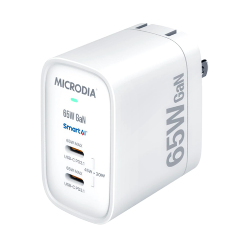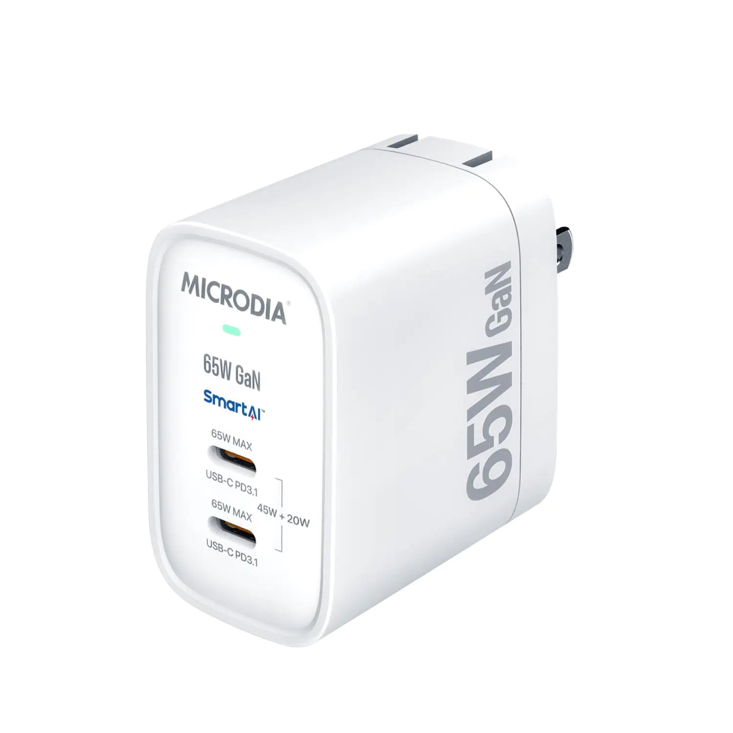 MICRODIA SmartCube Nano GaN Dual USB-C 65W Wall Charger Foldable PD 3.1 PPS SmartAI™ Charging USB-IF Certified (Black US) (White)